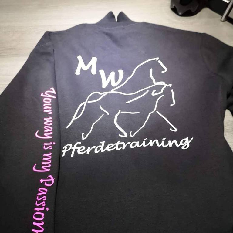Pferdetraining-MW hat die ersten T-Shirts, Pullis und Jacken entworfen.