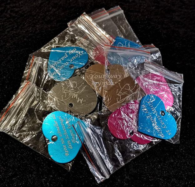 Die Marken erhälst Du natürlich mit Schlüsselring und im Tütchen verpackt.